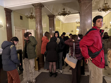 Next, we stopped to admire the rotating Kafka statue by artist David Černý before heading to the Estates Theatre—where Mozart himself conducted the world premiere of Don Giovanni. We were even treated to a short woodwind and brass concert in the foyer of this magnificent venue.