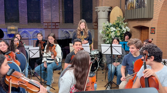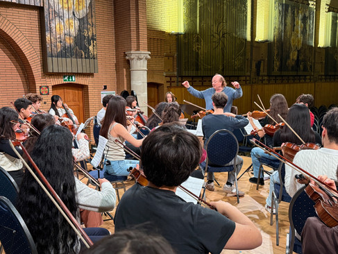 As our Festive concert of December 17th draws closer, our weekly string orchestra rehearsals have now expanded to include percussion, wind, brass and piano sections.